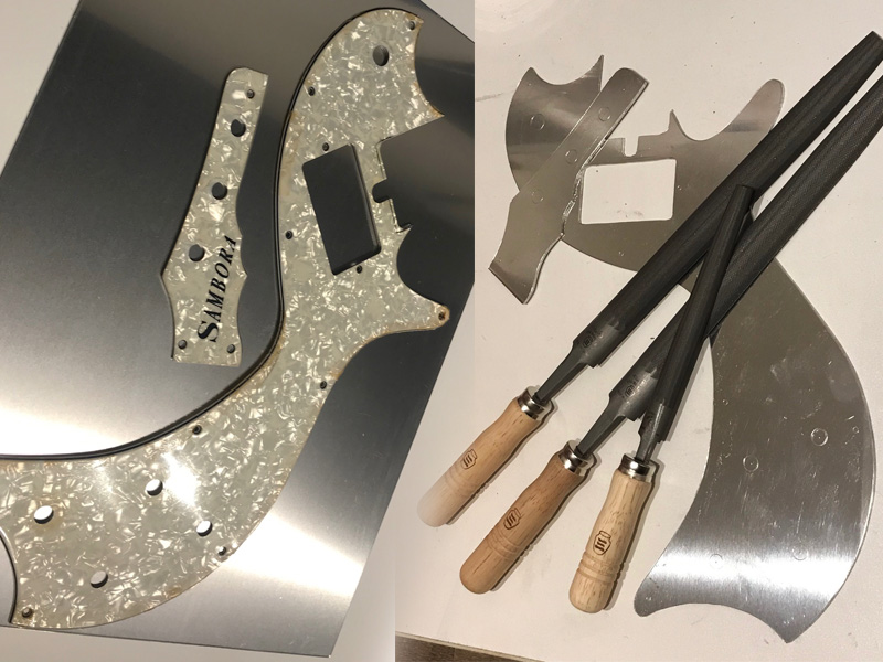 We'll be making both the pickguard and truss rod cover (or rather, headcover) from scratch.
