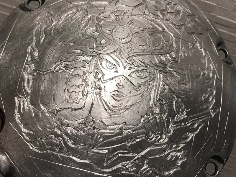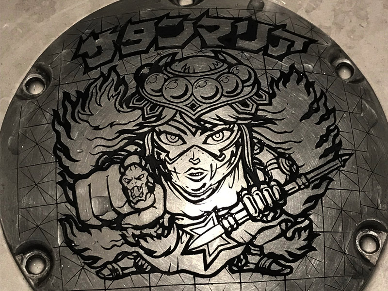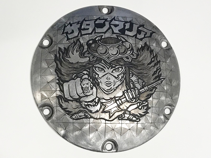 It's been a while since I've engraved a Harley Derby cover. The motif is Bikkuriman's "Satan Maria."